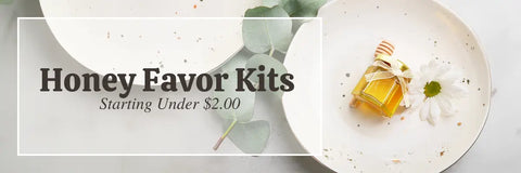 Start by selecting one of our prefilled blank honey favors. Then, personalize it with a variety of accessories such as honey dippers, charms, twine, and ribbons.
