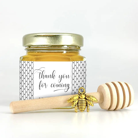 This is where you really shine! Our personalized printed label honey favor kits let you add a special saying, your names, and your event date for a truly memorable touch. You'll receive adorable honey favors with all the accessories delivered right to your door and ready to assemble. Every accessory and label is designed to complement your honey jars perfectly, ensuring a seamless and stress-free favor experience that will impress your guests.